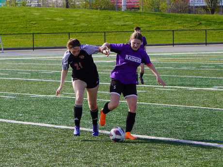 The Purple Raiders won convincingly 7-0 moving to 4-0 on the season. "I think it's really exciting for our school," said Saryna Milne who scored 3 goals against the Cardinals Tuesday afternoon. "It's a really big step forward for our soccer team."