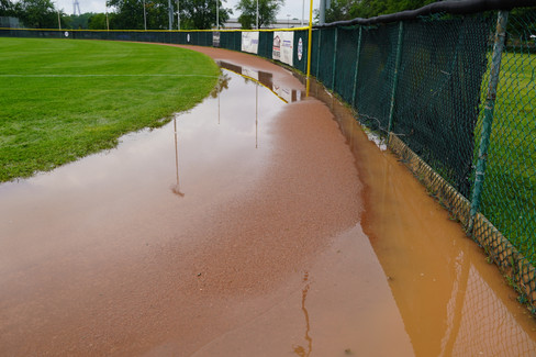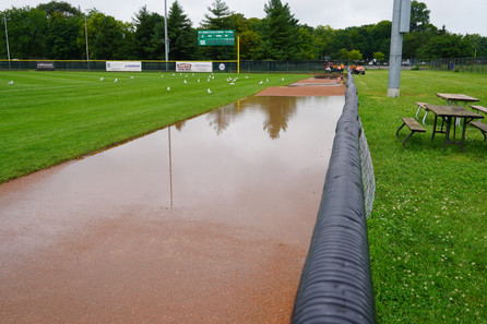 A heavy early afternoon downpour flooded parts of the Cullen Field rendering the diamond unplayable for their 1pm start against the Ilderton Riverhawks. There were infield puddles and parts of the warning track and the visitor's bullpen were under water. "The parks department is doing the best." Smith said of the city's efforts to drain the fields.